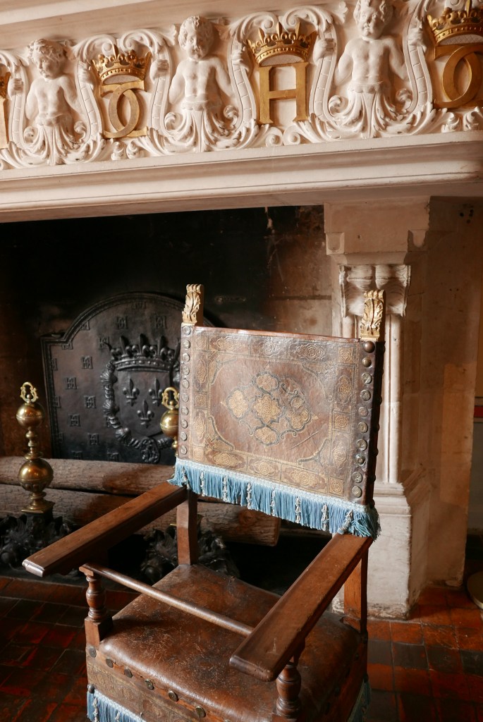 Parmi les chambres des reines, la chambre de Louise de Lorraine m’a particulièrement marquée, avec son décor macabre. On dirait la chambre d’une ado gothique (et très riche), en fait. Louise de Lorraine était l’épouse d’Henri III et elle a vécu une dizaine d’années à Chenonceau. Après la mort d’Henri III, elle a pris le deuil d’une façon plutôt ostentatoire, si l’on en juge par les cranes, les couronnes d’épines ou encore les lambris et les tapisseries noires qui ornent sa chambre. Elle a convié des religieuses pour vivre avec elle, autant dire que c’était une autre ambiance que sous Catherine de Médicis.