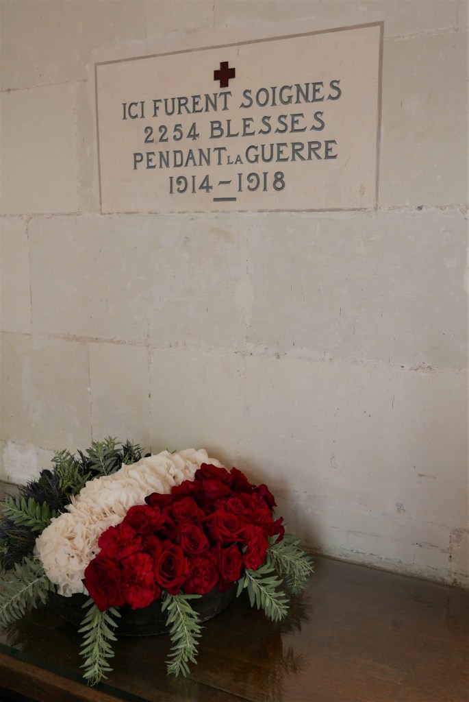 Sous les arches du château coule le Cher. C’est assurément ce qui fait la spécificité de Chenonceau, que l’on pourrait considérer comme un très joli pont, au final ^^. Les deux galeries superposées enjambent la rivière, et de l’intérieur on a l’impression d’être dans un bateau qui dériverait très lentement vers la forêt. Une plaque commémorative rappelle que, pendant la Première Guerre mondiale, Chenonceau a été transformé en hôpital militaire. Quelques décennies plus tard, pendant la Deuxième Guerre mondiale, le château sera situé sur la ligne de démarcation entre la France libre et la France occupée. La galerie servira alors de passage clandestin entre les deux parties du territoire.