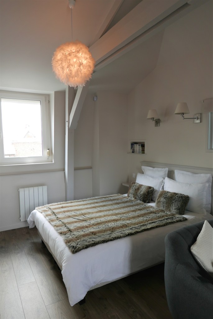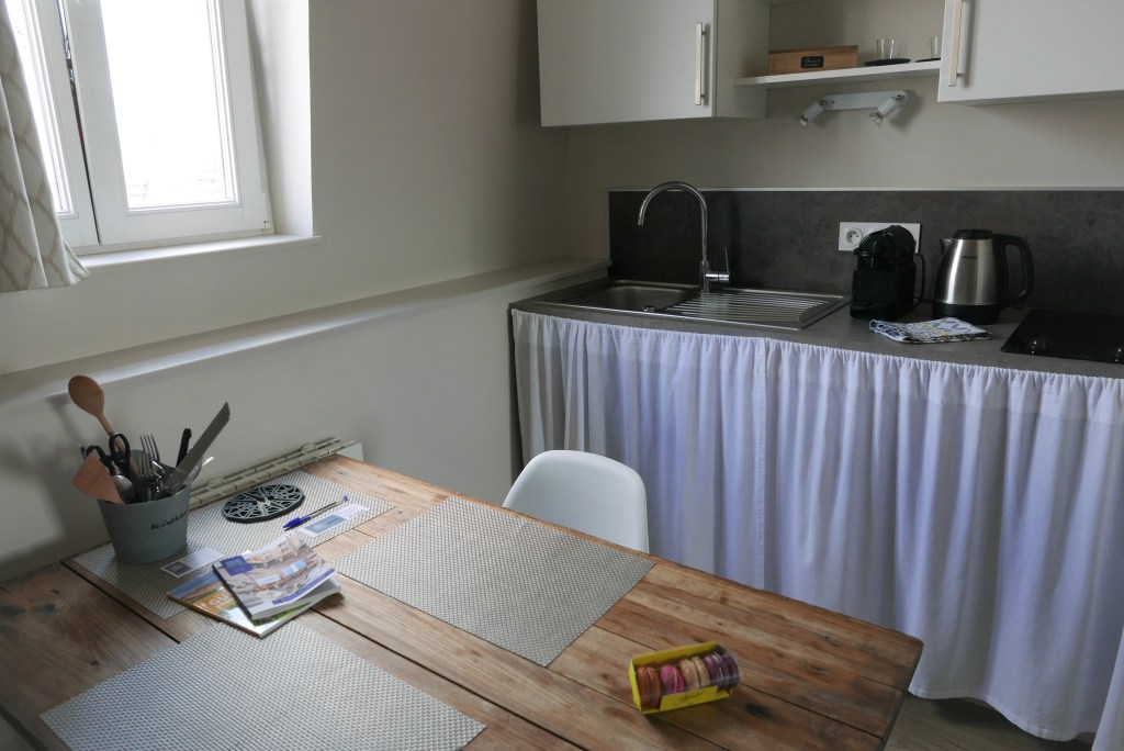 J’ai été hébergée en appart-hôtel à Places Appart, rue des Dominicains, un lieu hyper bien situé et très cosy dans une maison de ville en briques (cœur cœur). J’avais une chambre au dernier étage avec vue sur les pignons de la place des Héros et les toits environnants. J’ai beaucoup aimé le calme de la chambre, la déco ainsi que les petites attentions : des macarons qui m’attendaient (et que j’ai grignotés entre des averses le lendemain) et un panier de petit-déjeuner très bien garni. Le coin cuisine est bien équipé, c’est agréable de pouvoir se faire un thé ou un café à tout moment de la journée. Petit plus : j’ai pu laisser mon vélo dans une courette intérieure. Une belle adresse.