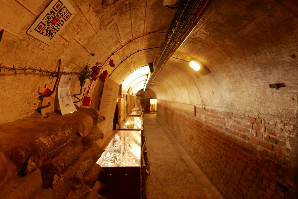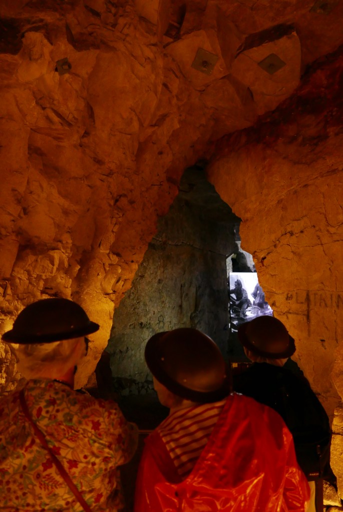 La visite de la carrière Wellington, qui était utilisée depuis le Moyen-Age pour l’extraction de la pierre, se fait avec un.e guide. Plusieurs multimédias ponctuent la visite, mais le parcours que j’ai vu changera prochainement. Quoi qu’il en soit, le lieu est chargé d’une histoire à hauteur d’hommes, où l’on raconte la vie quotidienne des 24 000 soldats britanniques qui se sont abrités là avant la bataille d’Arras en avril 1917.