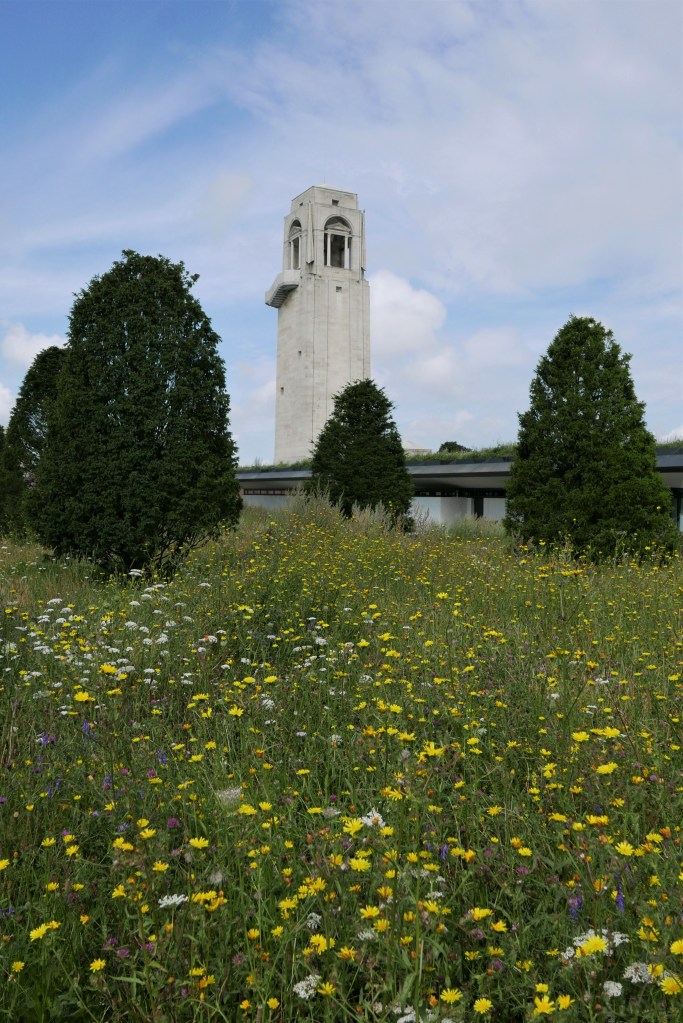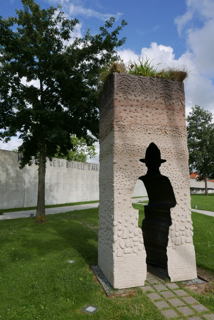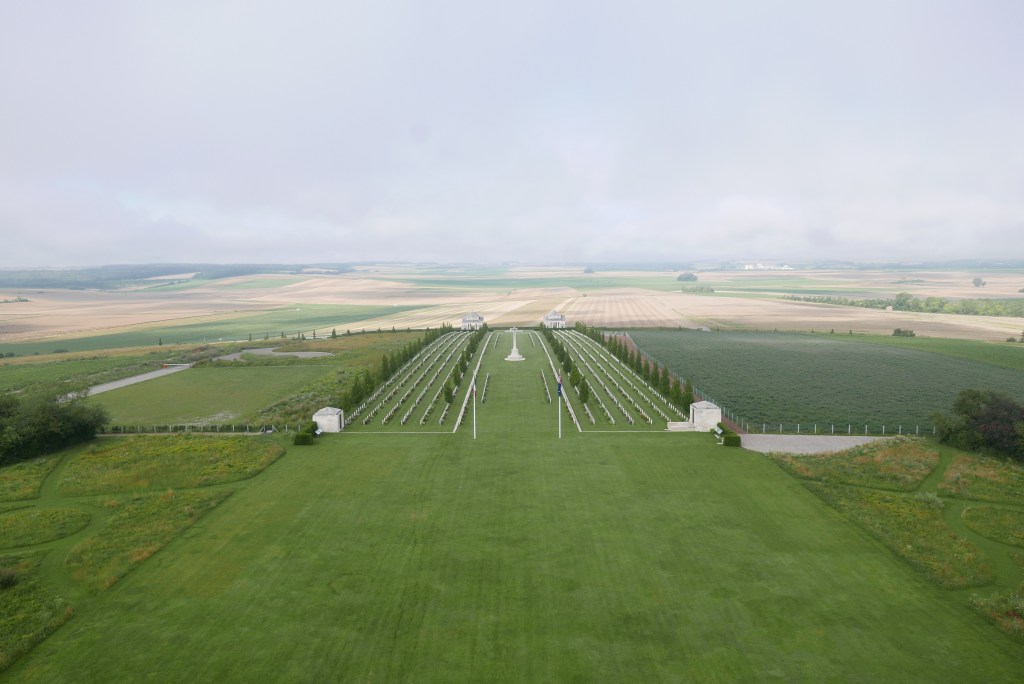 A l’entrée du Mémorial, je retrouve Cathy, directrice adjointe du Centre Sir John Monash. Ce site comprend en réalité deux lieux imbriqués : la nécropole marquant l’endroit où les troupes australiennes bloquèrent l’avancée allemande sur Amiens en 1918 et le centre d’interprétation qui se trouve juste derrière et qui est presque invisible lorsqu’on arrive. Ainsi, on expérimente d’abord le calme et le recueillement du cimetière, puis on monte en haut du monument pour avoir une vue d’ensemble des environs et on s’enfonce ensuite sous terre pour découvrir le centre Sir John Monash.