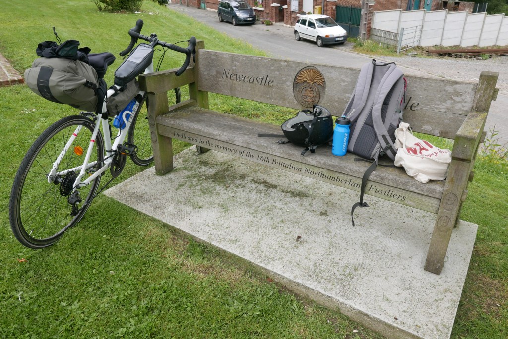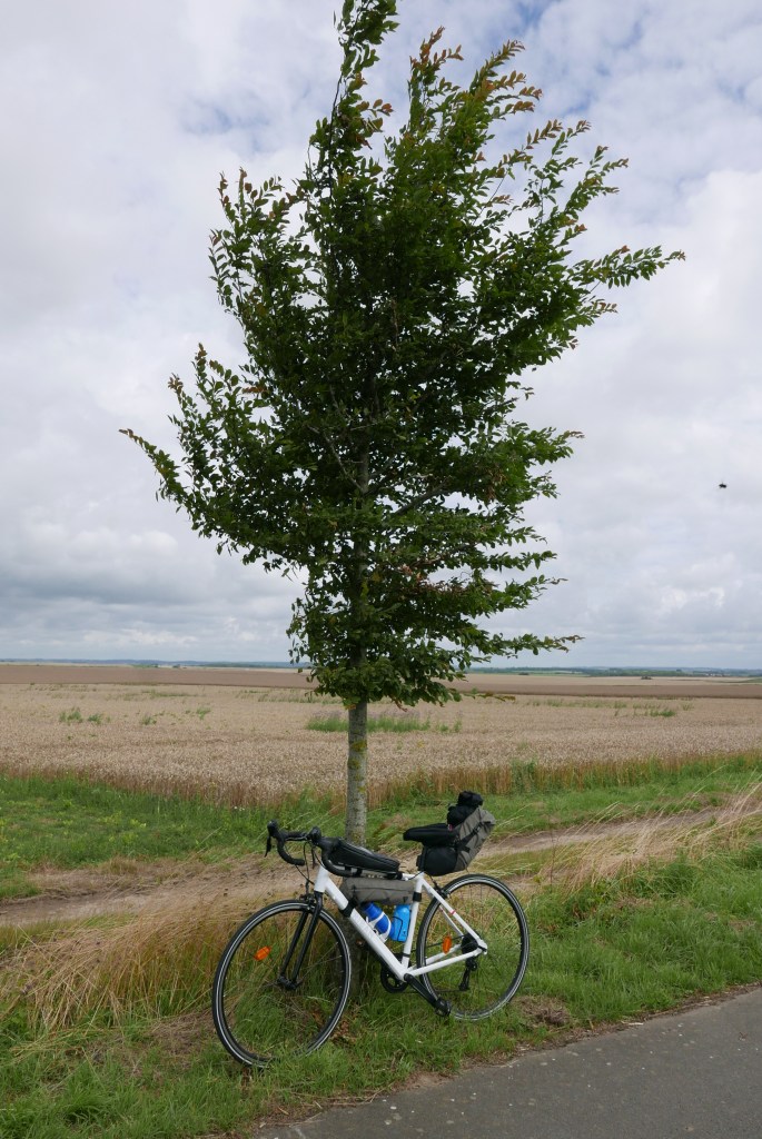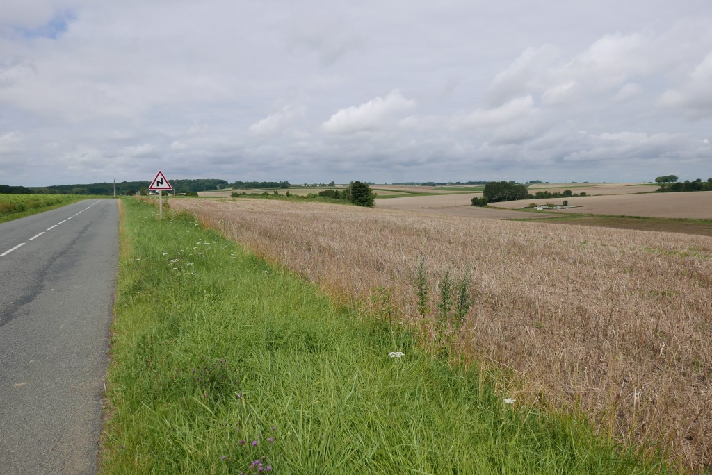 Je me dirige ensuite vers Pozières. A partir de là et pour le reste de la journée, la route monte et descend davantage. Bizarrement, je trouve toujours les descentes un peu courtes et les montées un peu longues. J’arrive sur le plus grand plateau de mon vélo, mais je tiens bon et ne pose pas pied. Je me contente de jurer ou d’encourager le vélo selon l’humeur. « Allez Jojo, on y est presque, on s’accroche ! » Heureusement qu’il n’y a pas grand monde aux alentours pour entendre mes élucubrations…