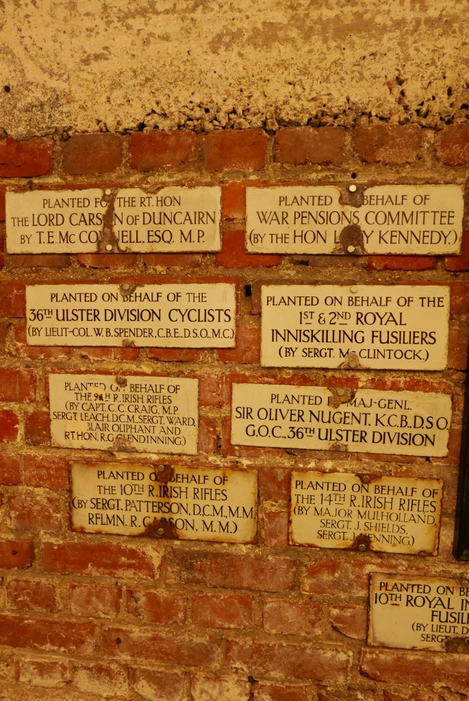Je rejoins finalement le parcours de la Véloroute de la Mémoire à Thiepval. Située en haut d’une colline, l’arche de briques du mémorial de Thiepval se remarque à des kilomètres à la ronde. C’est l’un des plus importants mémoriaux britanniques au monde. Je le connaissais déjà et je ne m’y suis pas arrêtée cette fois-ci, mais je vous conseille de prendre le temps de le visiter. Au centre d’interprétation, j’aime beaucoup la grande fresque du dessinateur Joe Sacco, qui retrace le premier jour de la bataille de la Somme – ce 1er juillet 1916 qui reste le jour le plus meurtrier de toute l’histoire de l’armée britannique. Non loin de Thiepval, la tour d’Ulster rend hommage aux soldats d’Irlande du Nord qui sont morts pendant la bataille.