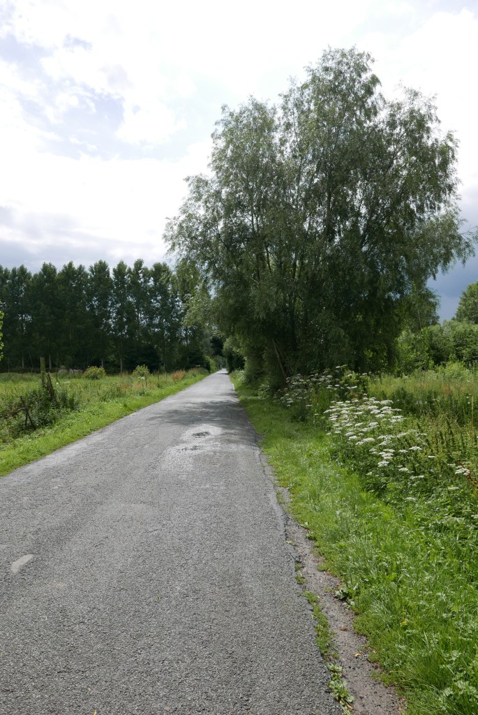 Au réveil, la température est fraiche et j’enfile mon legging avant d’enfourcher mon vélo. L’étape du jour est plus courte que la veille et prévoit quelques arrêts intéressants. Je quitte un peu à regret mes hôtes et m’élance vaillamment quand, au bout de 10 minutes, le ciel se lève pour de vrai. Du bon ciel bleu arrive, avec du soleil qui tape. Me voilà bien avec mon legging ! Je crève de chaud.
