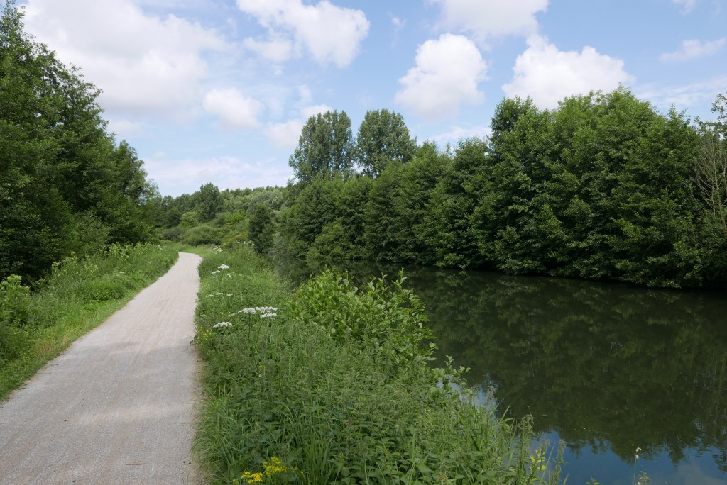 La Véloroute de la Mémoire offre ensuite une belle descente vers Albert et rejoint la verdoyante vallée de l’Ancre. L’arrivée à Albert passe par de jolis étangs. Je suis contente d’y passer la nuit et d’avoir le temps de découvrir la ville le lendemain, car elle me réserve de bien belles surprises.