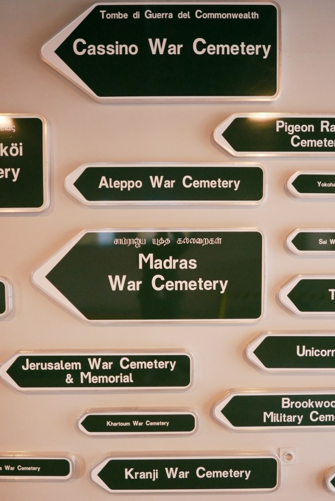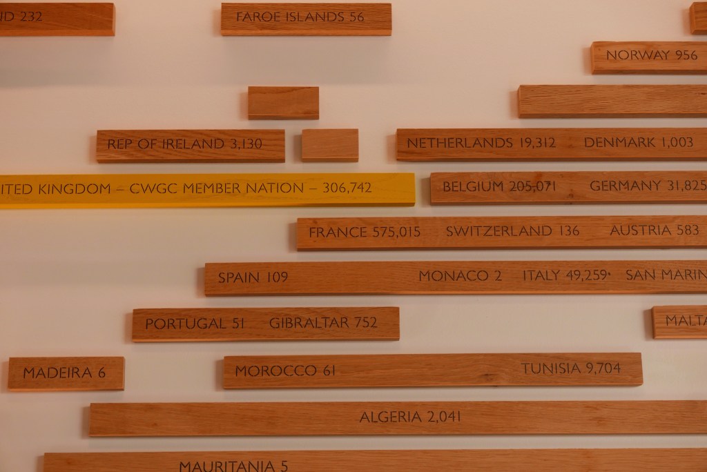 Pour vous donner quelques chiffres, cela représente 1,7 million de personnes inhumées dans 23 000 sites à travers le monde. Il y a des cimetières de la CWGC partout dans le monde, en Irak, en Thaïlande ou au Mozambique, par exemple. Le plus grand d’entre eux est celui de Tyne Cot, en Belgique. Et bien sûr, il y en a de nombreux en France, où reposent plus de 575 000 combattant.e.s du Commonwealth. Ce chiffre est vraiment énorme et montre bien que notre histoire et celle de ces pays sont étroitement imbriquées. C’est d’ailleurs la grande carte du monde qui accueille le visiteur à l’entrée de The CWGC Experience qui permet de réaliser cela.