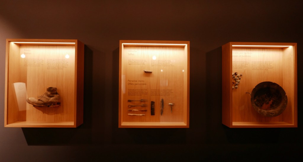 Il y a une petite salle particulièrement marquante qui évoque le travail anthropologique que réalise la CWGC. On arrive ici dans une évocation plus crue de la mort, car le travail d’identification qui a commencé juste après la Première Guerre mondiale n’est pas encore achevé. En effet, on retrouve chaque année de nouveaux ossements liés aux deux conflits mondiaux. Ça peut être dans le champ d’un agriculteur ou pendant des travaux. De nombreux restes humains ont par exemple été trouvés récemment à l’occasion de la construction d’un nouvel hôpital près de Lens.