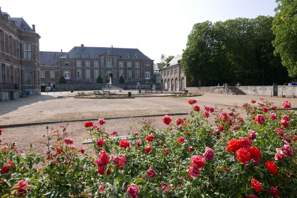 Floreffe est une étape parfaite entre Charleroi et Namur sur l’Eurovélo 3. Vous ne pouvez pas rater son abbaye-école qui surplombe la Sambre. On l’appelle abbaye-école parce que c’est une ancienne abbaye qui est aujourd’hui un groupe scolaire d’environ 1 700 élèves. C’est une visite assez insolite que je vous recommande, car ça reste inhabituel de visiter un lieu de patrimoine qui est aussi un lieu vivant où des jeunes de tous âges vont d’une salle de cours à l’autre ou trainent dans la jolie cour fleurie qui donne sur la rivière.