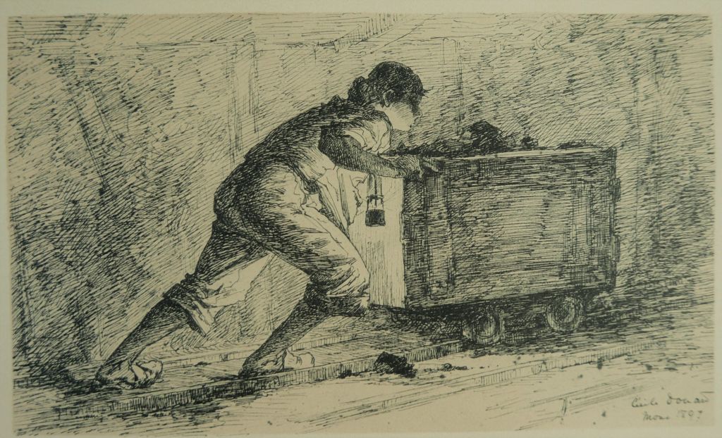 Côté 19ème siècle, le superbe cahier de croquis de Cécile Douard sur le Borinage. On y voit les hiercheuses et les glaneuses dans des scènes de la vie quotidienne qui ne gomment pas la pénibilité de la vie à la mine. C’est un style assez physique, les gestes sont beaux et précis, et je n’y ai pas perçu de misérabilisme non plus.