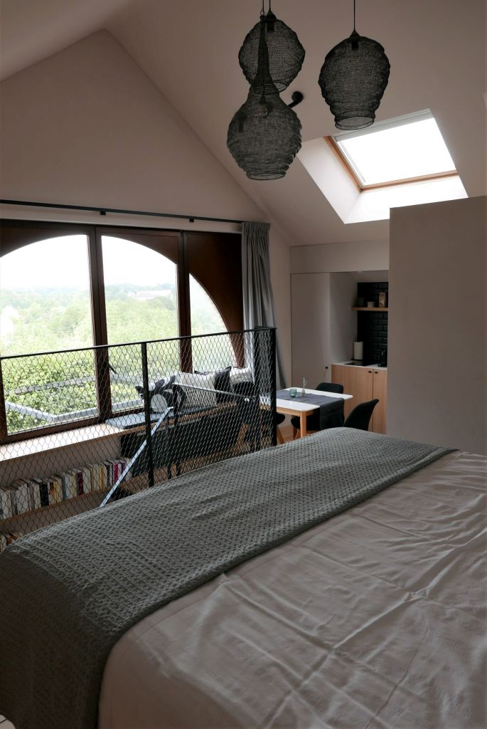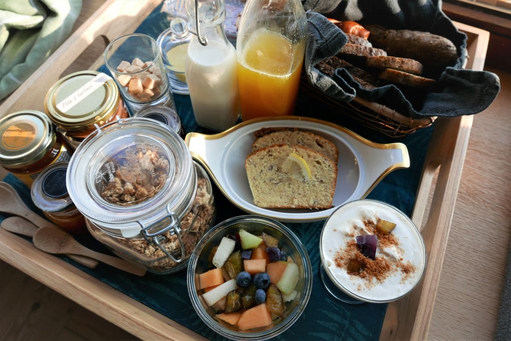 Tout dans cet endroit donne envie de lire, non seulement la bibliothèque, mais aussi le cadre rural et calme et la décoration. Aménagé en duplex dans un style loft complètement ouvert, le gîte est ouvert sur l’extérieur grâce à une baie vitrée en forme de demi-lune à l’étage. Tous les matériaux sont beaux, les meubles élégants, c’est une vraie adresse de charme. Fabienne propose aussi un petit-déjeuner copieux et savoureux réalisé à base de produits ultra locaux.