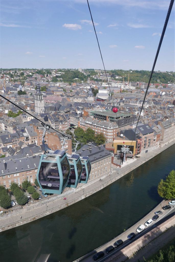 Il me reste une grande après-midi ensoleillée pour profiter de Namur. Je commence par monter à la Citadelle par le tout nouveau téléphérique, qui permet d’avoir une belle vue sur la vieille ville et sur la confluence. Je n’ai pas forcément envie de visiter la Citadelle, mais sachez qu’il y a plusieurs parcours de découverte sur le site. Pour ma part, je préfère flâner, en redescendant d’abord vers la Meuse, puis en suivant le parcours Namur street art (petit plan gratuit à récupérer à l’Office du tourisme).