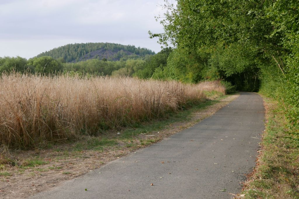 Martine commence sa visite en rappelant que le vélo est un levier d’émancipation pour les femmes, et je ne pourrais imaginer meilleure introduction à ce périple. Je la suis sur les RAVeLs, ces merveilleuses voies lentes réservées aux moyens de transport non motorisés qui sillonnent toute la Wallonie. En quelques minutes nous passons d’un quartier de maisons ouvrières à des champs avec vue sur les alentours. Des champs, à Charleroi ? Première surprise d’une longue série. Derrière les vaches, le panorama de l’agglomération se dévoile. La trentaine de terrils qui entoure la ville lui donne un relief vallonné et doux. Aujourd’hui, ils sont recouverts de végétation et rythment de leur verdure la ligne raide et rouille que forment les silhouettes des anciennes usines.
