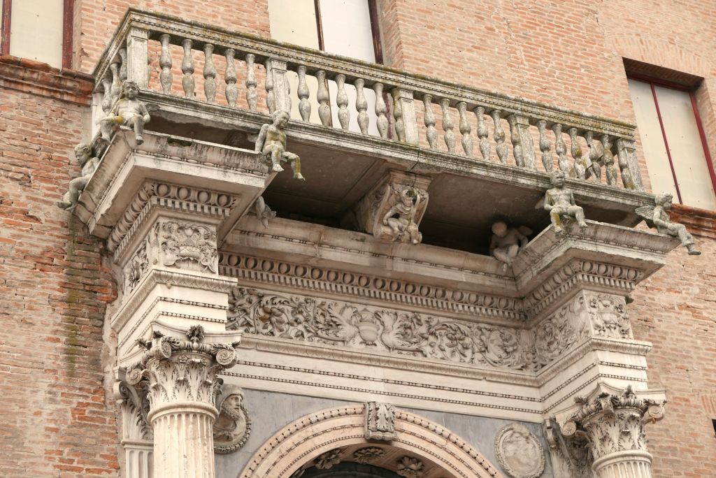 Immortalisée par Giosue Carducci et Gabriele D’Annunzio, cette rue de Ferrare est si connue des amoureux de l’art et de la poésie du monde entier que toute description en est superflue. Nous sommes, comme on le sait, exactement au cœur de cette partie nord de la ville qui fut ajoutée sous la Renaissance à l’exigu bourg médiéval. Vaste, droit comme une épée depuis le Château jusqu’au remparts des Anges, bordé sur toute sa longueur par les brunes masses de demeures patriciennes, avec sa lointaine et sublime toile de fond rouge brique, de vert végétal et de ciel, qui semble vraiment vous conduire vers l’infini.