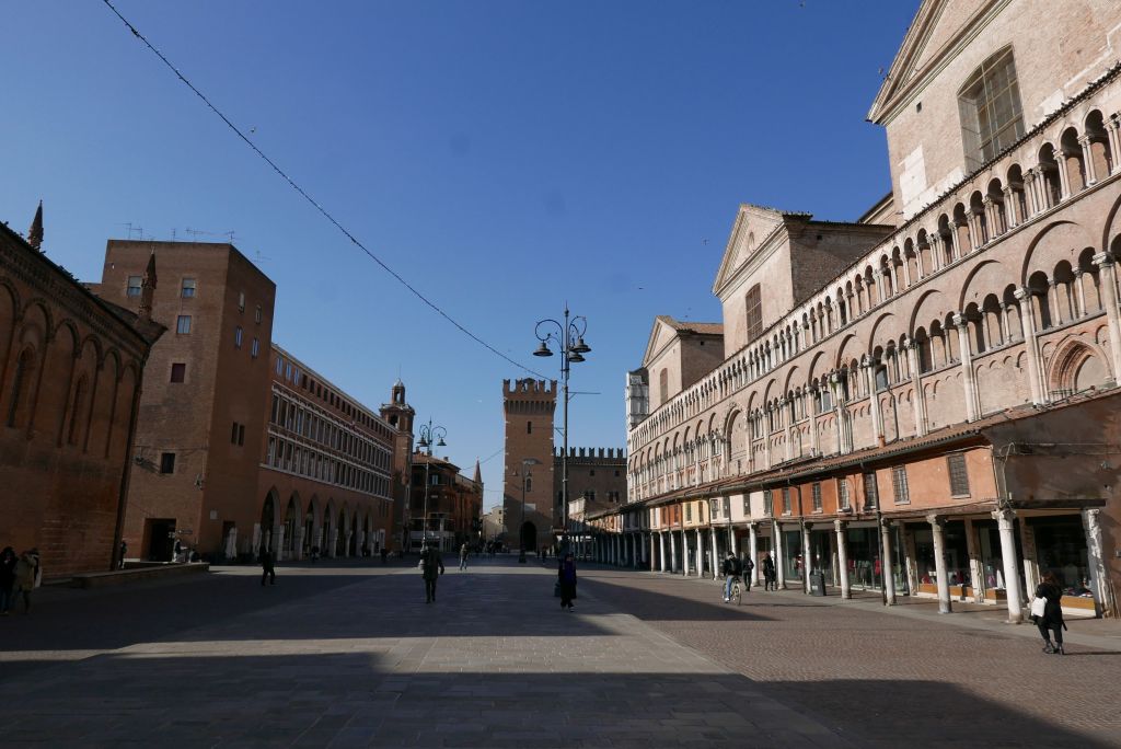 De Paris, nous sommes venues en train et cela se fait plutôt facilement grâce à la Frecciarossa Paris-Milan. Certes, les 7 heures peuvent paraitre un peu longues, mais le prix, le paysage et la facilité d’accès sont de bons arguments ! Depuis Milan, vous pouvez prendre un grand nombre de trains pour découvrir l’Italie du Nord. Nous avons pris un premier train pour Bologne, puis un deuxième pour Ferrare (le Milan-Ferrare ne durait pas plus de 3 heures, correspondance incluse).